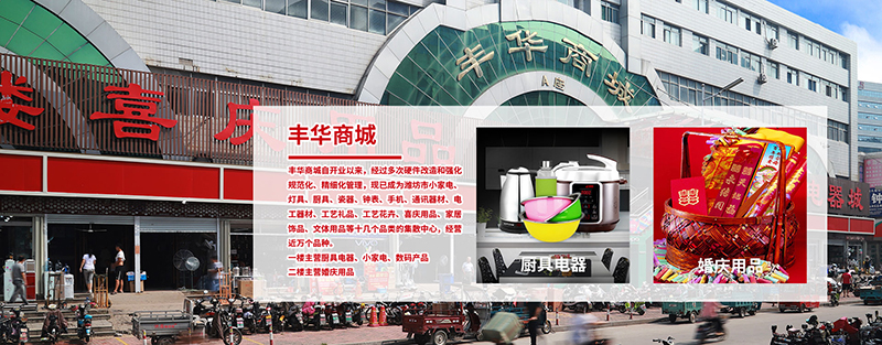 濰坊豐華(集團)公司,是一家集連鎖超市、(廚電、喜慶用品)專業(yè)市場、配送服務、生態(tài)農(nóng)業(yè)、餐飲服務、高端絲綢等為一體的民營股份制企業(yè),其總公司前身是始建于1948年的國家二級批發(fā)企業(yè),主營業(yè)態(tài)分布于濰坊市濰城區(qū)、奎文區(qū)、高新區(qū)、寒亭區(qū)與經(jīng)濟開發(fā)區(qū)。公司秉承“誠信、務實、發(fā)展、報國”理念,立足主營業(yè)務,拓展新興業(yè)態(tài),努力實現(xiàn)“貢獻國家  造福社會 發(fā)展企業(yè) 成就員工”的宗旨和目標。