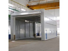 整體移動式噴漆房的設計目的,是為了滿足較大型工件打磨或噴漆的需要。一般情況下每套房體對應2-3個排風凈化工位,哪個工位上的工件需要噴漆時,房體則行走移動到那個工位,其他工位可以繼續打磨工作,待房體內的工件噴漆完畢后,再控制移動房體行走到打磨完畢的工件工位,如此設計可以實現大型工件的不間斷連續噴漆工作。房體為鋼結構構造,房體立柱下面設置有兩臺電動驅動行走機構,行走機構沿地面軌道行走。移動房體兩端設置有電動卷簾大門,房體行走時,大門升起,待到達位置時,大門降落關閉。大門與行走機構由電氣控制部分連鎖控制,大門完全升起后,房體才可移動行走。了解更多關于噴漆***格,歡迎與我們公司取得聯系,獲取方案及報價,微信/手機:13655437136