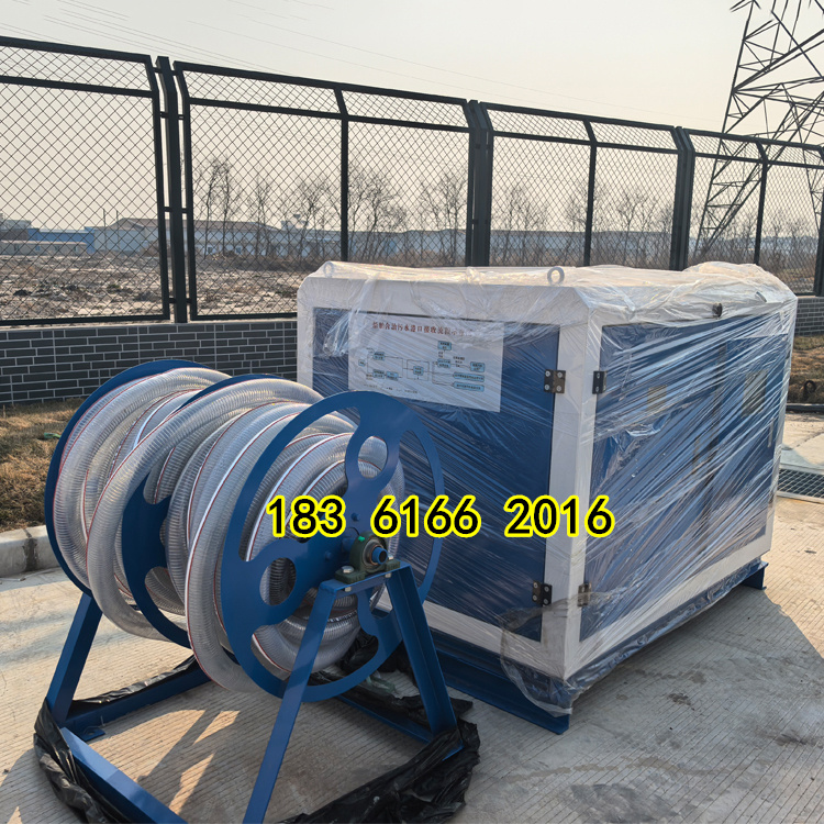 本產品為船用污水岸上智能接收裝置,該裝置由底座、外殼、粉碎自吸泵、閥、控制箱、手動卷管架、水箱等組成,分固定式和移動式兩種。